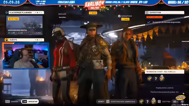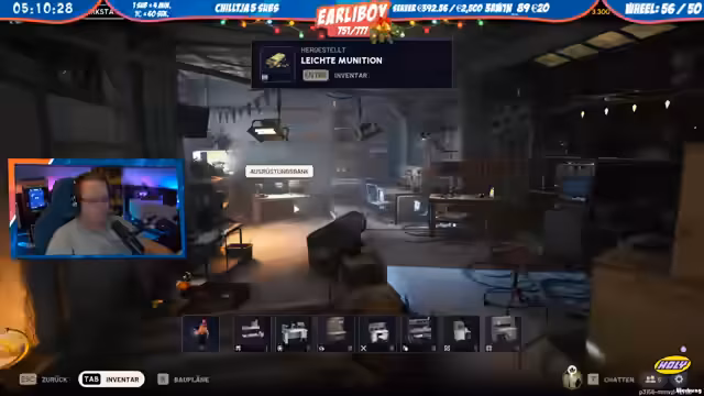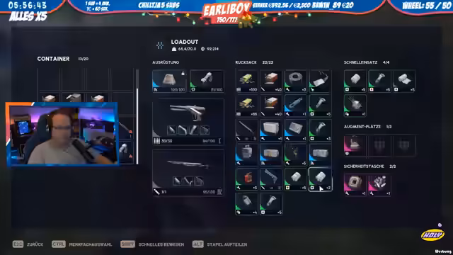 06:23:20Nach intensiven Kämpfen mit hohen Verlusten (ca. 100k) beendet das Team die Session. Gründe sind die hohe Frustration über unfaire Gegneraktionen und technische Herausforderungen. Es werden kurzfristig noch Verkaufsentscheidungen für Ausrüstung getroffen, bevor der Stream mit einer Zusammenfassung der Verluste und dem Ausstieg aus dem Spiel endet.