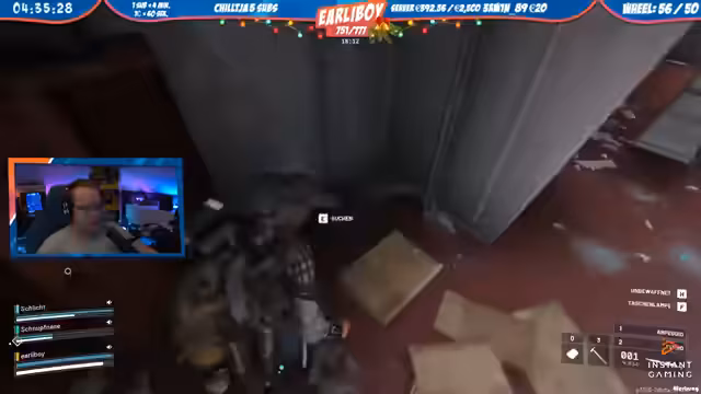 05:07:28Das Team sichtet einen schweren Boss-Gegner (Rocketeer) und diskutiert Strategien zu dessen Bekämpfung. Sie identifizieren Schwachstellen (gelbe Markierungen an den Beinen) und entscheiden sich nach kurzer Prüfung für einen taktischen Rückzug in die Stadtbereiche. Während des Rückzugs kommt es zu weiteren Gefechten, bei denen die Kommunikation ('Lauf, lauf, lauf!') und das schnelle Reagieren auf Gegnerbewegungen entscheidend sind. Der Streamer verweist auf die Herausforderung durch viele gegnerische Spieler in der Stadt.