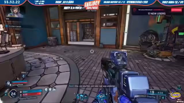 07:29:28Es wird über eine Quest gesprochen und der Streamer bittet die Zuschauer, Oprah Jax auszuprobieren. Es wird überlegt, ob man sich zu einem anderen Spieler teleportieren soll, der sich in der Nähe einer Nebenquest befindet. Es wird über das Gameplay diskutiert und die Frage aufgeworfen, ob man sich zu sehr auf Nebenmissionen konzentrieren sollte. Der Streamer äußert sich positiv über Borderlands 4 und lobt das Gameplay. Es wird erwähnt, dass es im Spiel Legendary Drops gibt, und der Streamer berichtet, dass in der aktuellen Session bereits vier Legendarys gedroppt sind. Es wird überlegt, wie man mit dem Tod im Spiel umgeht und wie viel es kostet, wiederbelebt zu werden. Der Streamer hat eine Million Kohle auf dem Konto und bezeichnet sich selbst als "rich bitch". Es wird überlegt, wie man zu einem bestimmten Ort gelangt und welche Route man nehmen soll. Der Streamer entdeckt einen Claptrap und es wird ein Boss gespawnt, den es zu besiegen gilt. Es wird über die Performance des Spiels diskutiert und der Streamer findet es nicht unperformant, sondern flüssig. Es wird überlegt, ob man die verdammte Stimme zu sich porten kann. Der Streamer sammelt Sachen ein und verkauft sie gleich alle. Es wird überlegt, ob man sich zu Anja teleportieren soll. Es wird über das Sortieren von Waffen und das Verkaufen von Gegenständen diskutiert. Der Streamer bricht eine Reise ab und es wird überlegt, ob man hier was die Forten einnehmen kann.