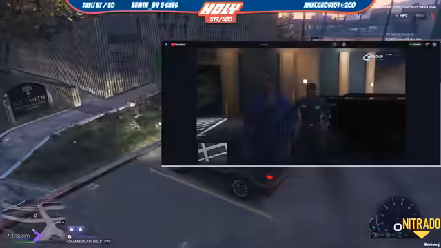 05:08:15Der Fokus verschiebt sich von den großen Einsätzen zum alltäglichen Leben in der Spielwelt. Der Streamer sucht nach Personen mit einem Laster, die er auffordern soll, von der Straße herunterzukommen, und versucht, jemanden im Hafengelände mit einer besonderen Frisur zu finden. Er interagiert mit NPC-Figuren, die in einem Disney-ähnlichen Umfeld unterwegs sind, und versucht, sich bei diesen Essen und Trinken zu organisieren. Er beschreibt die Person als einen weiße Anzug tragenden, blonden Mann mit einem großen Kopf, der sehr hungrig ist.
