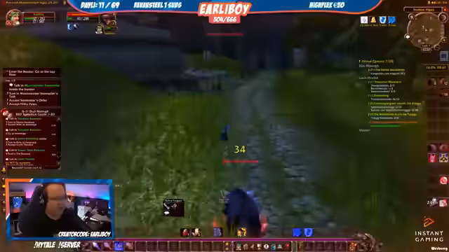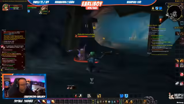07:33:06Der Stream beginnt mit lockeren Gesprächen und wechselt schnell zu World of Warcraft. Der Streamer farmt eine Quest, findet ein Schwert und interagiert mit anderen Spielern, die ihm Mobbs klauen. Er kommuniziert mit dem Spieler Dreamy, der in einer anderen Region unterwegs ist, und äußert Frustration über typische Herausforderungen im Spiel. Es werden weitere Quests und Treffpunkte besprochen, während der Streamer seine Umgebung anpasst und mit dem Chat interagiert, um seine Eskorte zu erledigen und sich mit anderen abzustimmen.