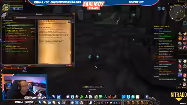 06:15:59Nach einer Unterhaltung mit Anja, die alleine quests, entscheidet sich der Streamer, Elite-Quests mit seiner Gruppe zu machen. Er beschreibt seinen Frustration über langsames Leveln im Rotkammgebirge und seine Methoden, XP durch Pulls von Gegnergruppen zu maximieren. Gleichzeitig kritisiert er den RestedXP-Guide für zu viele Laufwege und das hohe Risiko, das er beim Alleine-Questen eingeht.