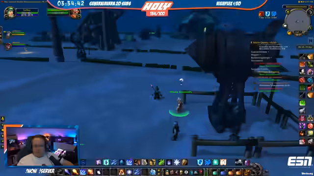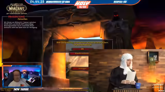 07:20:39Während einer Pause erzählt der Streamer die Kern-Story von World of Warcraft: Der Konflikt zwischen den Geschwistern Allianz und Horde, die Erschaffung Azeroths durch die Schwester und die spätere Integration von Murlocs. Diese Hintergrundgeschichte wird verwendet, um die Zeit bis zum Gruppen-Reset zu überbrücken. Parallel bereitet sich das Team auf den Dungeon-Lauf vor, wobei Schlafpausen für erschöpfte Spieler eingeplant werden.