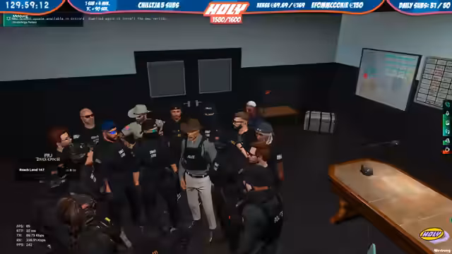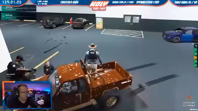 06:41:01Im Rahmen des GTA RP rollt eine Polizeiverfolgung ab. Ein Fahrzeug wird auf dem Boulevard Richtung Osten verfolgt, zwei Einheiten sind im Einsatz. Nach einer Kontrolle kommt es zu Festnahmen, da die Insassen eines Novak-Autos verdächtigt werden, kriminell zu sein. Der Streamer erklärt, dass es sich um kein Standard-GTA, sondern um ein modifiziertes GTA RP mit eigenen Spielmechaniken und Regeln handelt.