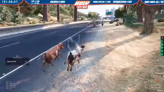 Ein großes Server-Update von 9-10 GB wird heruntergeladen, was den Vorgang ins Stocken bringt. Anschließend wird versucht, eine Kuhherde zu organisieren. Diese Aktion eskaliert, als aggressive Kühe die Polizei angreifen. Die Situation spitzt sich zu, als die Polizei das Feuer eröffnet, um die Kontrolle zurückzugewinnen und die Tiere zu bändigen.