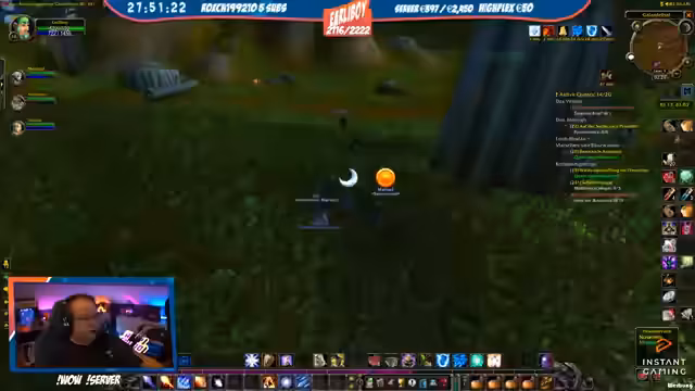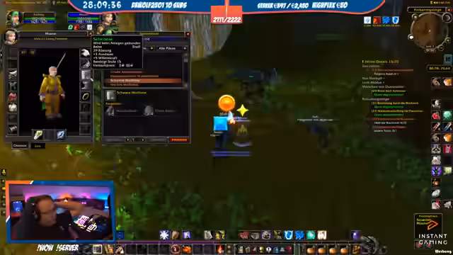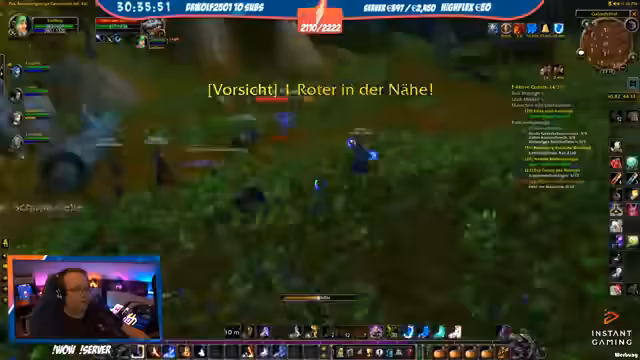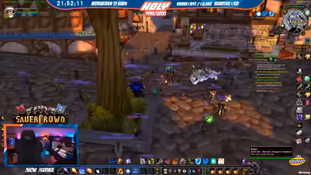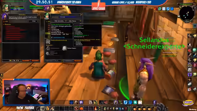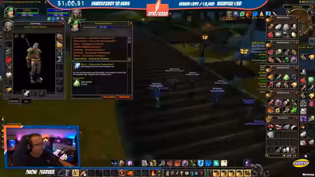 05:18:39Ein Charakter wechselt von Nachtelfe zu Mensch, was der Streamer als mentalen Vorteil für mehr Spaß im Spiel sieht. Er selbst ist Level 22 und wird von einem Priester namens Max 'gecarried'. Ein problematischer Moment ereignet sich, als der Streamer versehentlich einen gegnerischen Magier anvisiert und gefangen wird, was nur knapp überlebt wird. Es folgen Diskussionen über das Aussehen von Magiern und das Erlernen von Berufen wie Schneiderei.