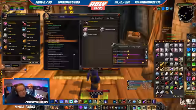 05:20:02Ein zentrales Thema ist der Wunsch nach einer Gildenbank, da das Fehlen eines solchen Features als sehr störend empfunden wird. Der Streamer erklärt, dass er viel Zeit damit verbringt, Materialien über den Chat zu organisieren, was ohne eine Gildenbank umständlich ist. Er äußert sich kritisch zum Reproduktionsansatz des Spiels, da einige Kleinigkeiten aus dem Original World of Warcraft nicht enthalten sind, und wäre mit einem Erfolgssystem und Titeln wie in Wrath of the Lich King sehr zufrieden, da dies dem Spiel mehr Ziele geben würde.