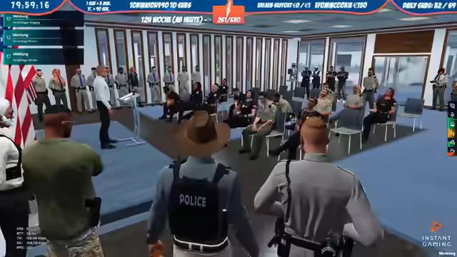 07:54:35Der Stream beginnt mit der Koordination eines Einsatzes. Ein provokanter Vorfall führt zur Festnahme von Duncan Clayne, der seinen Haftantritt verpasst hat. Nach einer kurzen Diskussion über die Melde- und Haftantragspflichten wird der Tatverdächtige in das State Prison gebracht, um dort weitere Schritte zu klären. Gleichzeitig werden andere Fahndungsziele wie der Verdächtige Dixon geortet, um weitere Festnahmen durchzuführen.
