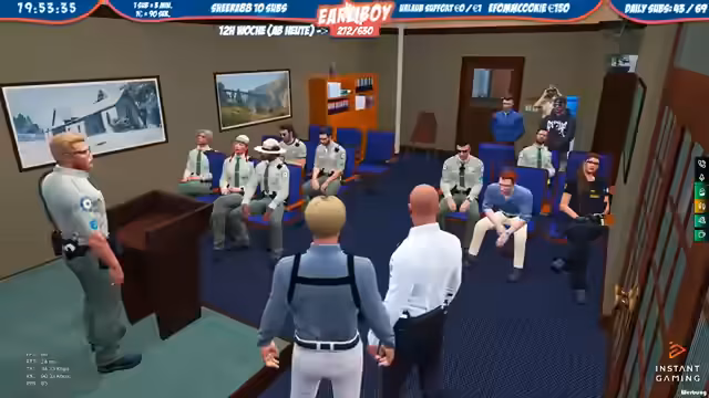 04:56:48Ein Kollege wurde bei Harmony Customs hochgenommen und gefesselt, wobei das Funkgerät abgenommen wurde. Die Täter waren maskiert und flohen in einem schwarzen Tailgater Richtung Westen. Es wird eine Verlustmeldung erstellt und Captain informiert. Es wird spekuliert, ob die Täter nur das Funkgerät wollten. Es wird über die aktuelle Personalbesetzung gesprochen, darunter Praktikanten und Staats. Es wird festgestellt, dass die Besetzung heute sehr gut ist. Es wird erwähnt, dass Klaus ins Auto gefahren ist und es keinen TÜV mehr bekommt. Es wird über ein Budget gesprochen und darüber, ob der Chef nett ist. Es wird überlegt, was man auf den Heckschaden schreiben soll, da Klaus nicht fahren kann. Es wird ein Kollege hochgenommen und gefesselt bei Harmony Customs, Funkgerät abgenommen, schwarzer Tailgater. Es wird überlegt, ob man einen Funkwechsel machen soll, nachdem sowas geschehen ist. Es wird überlegt, ob man sich auf dem Mittelträger hinstellen soll. Es wird überlegt, ob man die eingeschleusten Kollegen, den Herren Hemmen und den Herren Brosch, entlassen soll, da sie lange unangekündigt weg sind. Es wird überlegt, ob man die beiden auf den Sack gehen soll. Es wird überlegt, wer wo ist und was die Landraten machen. Es wird überlegt, wer der Chef ist und ob man etwas falsch machen kann. Es wird überlegt, was man mit den Blechen und Batterien machen soll. Es wird überlegt, ob man den Manuel Watson abholen soll. Es wird überlegt, ob man die Strafe bezahlt und alles einträgt. Es wird überlegt, ob man alles vorbereiten kann.