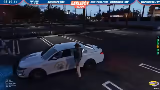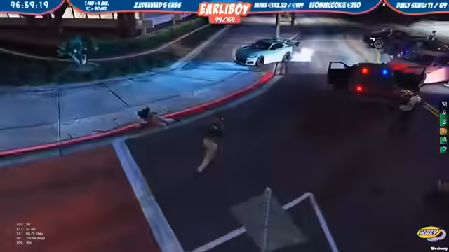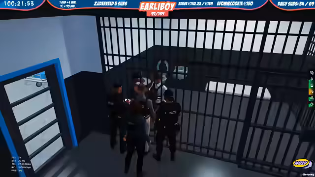 08:04:54Der Streamer führt Razzien durch, bei denen Personen festgenommen werden. Im Gefängnis kommt es zu Diskussionen über Sexismus-Vorwürfe, als Inhaftierte aufgefordert werden, in die Küche zu gehen. Zudem wird die Jagd auf ein weiteres Fahrzeug aufgenommen, bei dem der Fahrer versucht zu fliehen, aber letztendlich gestellt werden kann. Die Eskalation am Einsatzort droht, als Einheiten umzingelt werden.