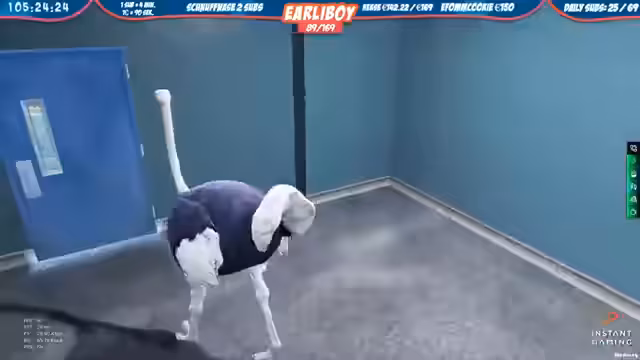 00:41:31Ein zentrales Ereignis des Streamings ist die Interaktion mit einem Strauß. Der Streamer entwickelt eine scheinbare Zuneigung zum Tier und möchte es behalten, was zu Diskussionen im Chat führt. Gleichzeitig äußert er starken Frust über das Spiel, dessen Steuerung und das Geschehen. Er verliert seine Geduld, beschimpft das Spiel als Scheißdreck und ist sichtlich genervt von der Situation, besonders als er aus dem Server geworfen wird und kurzzeitig keine Internetverbindung hat.