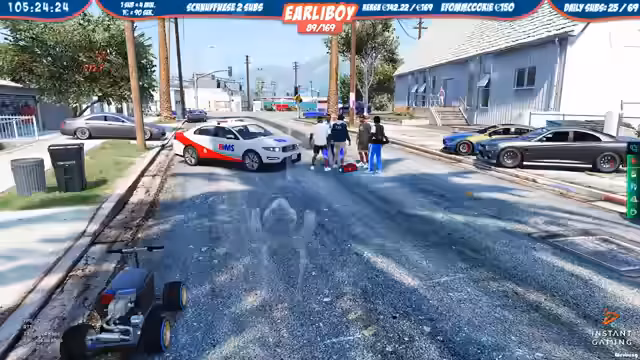 06:25:05Nach einer Fahrt durch verschiedene Orte wie den Hafen, das Casino und den Schrottplatz gerät der Streamer in eine Verfolgungsjagd. Dabei verliert er das control über sein Motorrad und prallt gegen einen Gegner. Nachdem die Situation an der SFC geklärt ist, setzt die Fahrt Richtung Norden fort. Es kommt zu weiteren Vorfällen, darunter ein Streit im Gegenverkehr, der mit einer Beinahe-Kollision endet.