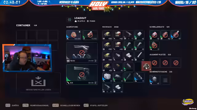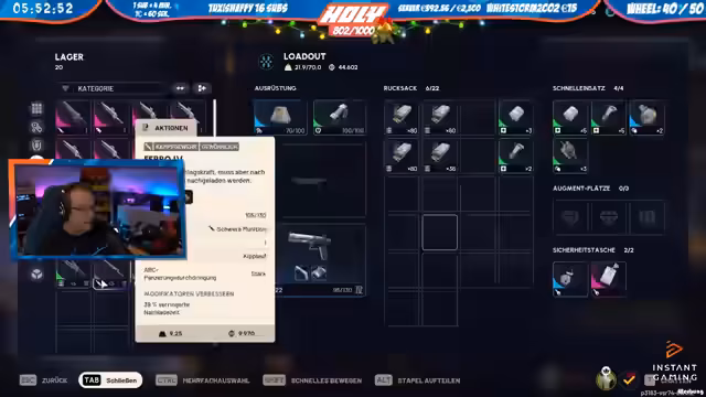 09:29:03Diskussion über Capes, die über Twitch-Codes eingelöst werden können, wobei er Probleme mit Account-Verknüpfungen beschreibt. Er plant接下来的 Solo-Runs für bessere Loot-Chancen und optimiert sein Inventar: Dabei priorisiert er Magnete, blaue Beutemarken und Heilung. Er vergleicht Waffen wie die 'Anvil' mit der 'Stitcher' und diskutiert Modifikationen (z. B. verlängerter Lauf). Ziel ist es, Übergewicht zu vermeiden und Ressourcen für Herstellungsprozesse (z. B. Energy Clips) zu nutzen, da Materialverarbeitung oft profitabler ist als Rohstoffverkauf.