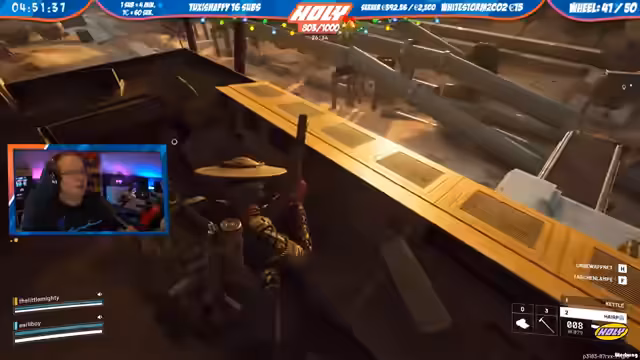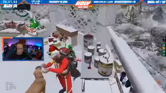 01:43:02Ein Hype Train wird gestartet, um bis Heiligabend 12 Stunden Streamzeit zu erreichen. Das Ziel ist, den Stream am 24. Dezember um 18 Uhr zu beenden. Die Community wird aufgerufen, durch Subs, Bits oder Sub-Bomben beizutragen, um den Timer zu erhöhen. Aktuell läuft der Train auf Level 6 mit verdoppelten Belohnungen.