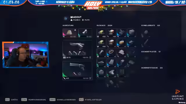 11:43:43Fokus liegt auf letztem Profit vor dem Reset: Der Streamer tauscht Schlüssel und Materialien mit Partnern, optimiert sein Inventar auf 200.000 Einheiten Kapazität und recycelt niedrigstufige Waffen für Extra-Einnahmen. Er plant eine letzte 'Ernte-Runde' für Schlüssel (Testanbau, Kontrollturm) und diskutiert Risk-vs-Reward-Scenarien bei Extraktionen. Trotz Erfolg (4,5 Millionen erreicht) bleibt Frustration über den Grind statt Action spürbar – die letzten Runden dienen nur noch dem Materialtransport für den Partner, während eigene Kampfambitionen zurückstehen.