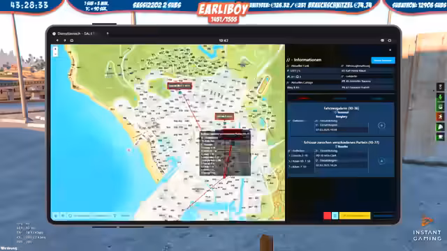 06:19:22Die Polizeipatrouille wird von Funksprüchen und allgemeiner Verwirrung geleitet. Es kommt zu einer Verfolgungsjagd, bei der ein verdächtiger Fahrer schließlich gestellt wird. Der Fahrer wird kontrolliert, muss aber wegen ungenügenden Papieren eine Strafe zahlen. Während der Patrouille werden immer wieder verdächtige Personen oder Situationen gesichtet, wie ein liegender Fußgänger auf dem Seitenstreifen, was die Anspannung im Funkverkehr erhöht und die Komplexität des Simulationslebens zeigt.