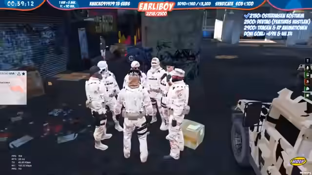 04:32:18Es wird angekündigt, dass es ab heute die PDW auf der Straße gibt. Es wird über Schulden gesprochen und wie diese beglichen werden können. Es wird ein Vorschlag gemacht, wie man die Schulden begleichen kann. Es wird erwähnt, dass noch 103k offen waren und 54k bezahlt wurden. Es wird erklärt, dass man Waffen gegen eine PDW eintauschen kann. Es wird das Verhältnis erklärt, wie viel verschiedene Waffen wert sind. Es wird erklärt, dass es die PDW nicht für Bargeld gibt. Es wird überlegt, wer welche PDW haben möchte. Es wird überlegt, wer welche Waffen tauschen möchte. Es wird überlegt, wer welche Informationen benötigt. Es wird erwähnt, dass man sich um 20 Uhr treffen will, um über etwas zu reden. Es wird überlegt, wer welche Aufgaben übernehmen soll und wer welche Ausrüstung benötigt.