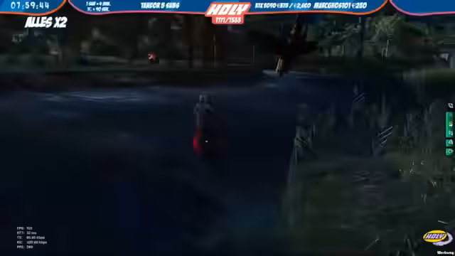 02:59:03Es läuft eine Verfolgungsjagd am Fluss, wobei mehrere Personen auf der anderen Seite Richtung Süden und Tankstelle rennen. Es besteht die Annahme, dass es sich um kleine, verletzte Täter handelt, die versuchen sich selbst zu retten. Interessant wird die Situation werden, wenn Personen auf das Team zurennen. Der Streamer beobachtet die Entwicklung und plant weitere Aktionen.