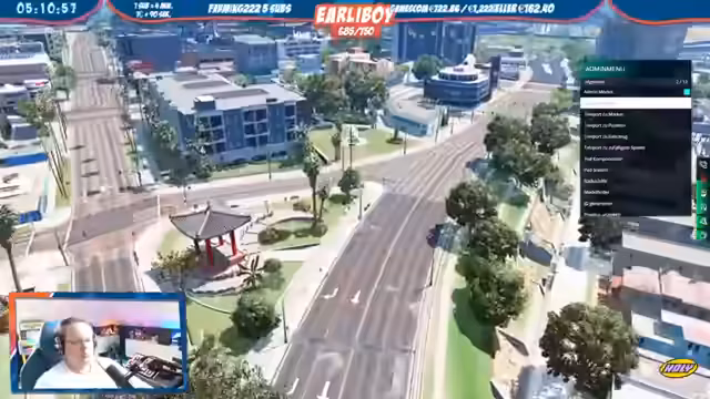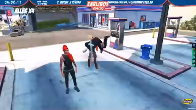 05:39:52Der Rückzug und die erneute Frustration führen zu chaotischen, fast spontanen Handlungen. Ein Plan, einen Waffenladen auszurauben, entsteht und wird ebenfalls chaotisch umgesetzt. Der Versuch scheitert, als der Verdacht eines Rettungsteams aufkommt und die Situation unkontrollierbar wird. Das gesamte Treiben ist von einer ständigen Eskalation geprägt, bei der ein für das Stream-Ende typischer Abgang mit ankündigter Pause für eine Admin-Besprechung folgt.