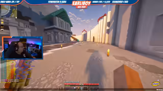 01:31:13Der Streamer stellt den Chat dauerhaft auf Follower-Modus und erwähnt, dass der Modus in Zukunft nicht mehr geändert wird. Er startet eine Countdown-Zählung für ein Event namens "Crazy Peak Cinema" und fordert die Zuschauer auf, dorthin zu kommen. Gleichzeitig baut er an der Map und beschwert sich über das langsame Bautempo, indem er den Vergleich heranzieht, dass Österreich auch nicht in einem Tag gebaut wurde. Er erwähnt den Kontostand von Revi und vermutet einen neunstelligen Wert, der hauptsächlich aus Aktienvermögen besteht.