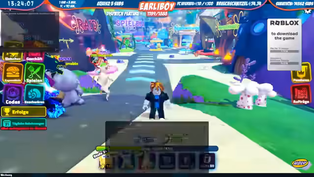 08:13:06Der Streamer kauft magische Muscheln und andere Gegenstände in Roblox, um seine Charaktere zu verbessern. Er zeigt, wie man Robux, die Währung in Roblox, verwendet, um spezielle Items zu erwerben. Nachdem er seine Verbündeten wie Patrick verbessert hat, beginnt er eine Runde im Tower Defense Spiel. Dabei platziert er seine Einheiten strategisch, um die anstürmenden Feinde abzuwehren, und beginnt mit demlevel up seiner Charaktere.