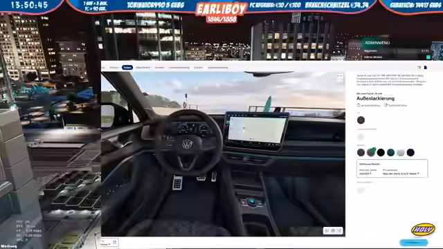 11:05:39Der Streamer zeigt sich beeindruckt von den Innenräumen moderner Fahrzeuge, insbesondere von großen Displays und Touch-Bedienungen am Lenkrad. Obwohl er anfangs skeptisch war, hat er diese Bedienungsmethode schätzen gelernt. Er testet verschiedene Konfigurationen und Farben für ein potenzielles neues Fahrzeug, wobei er besonders auf das Design und die Ausstattung Wert legt. DieseAusführungen demonstrieren, wie persönliche Vorlieben das Fahrerlebnis beeinflussen können.
