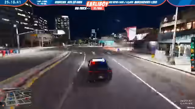 02:28:22Ein Personengespräch beginnt und die Situation eskaliert, als der Streamer einen vermeintlich Reckless fahrenden Fahrer auf der Route 68 bemerkt und eine Verfolgungsjagd einleitet. Während der Verfolgung durch die Stadt, die unter anderem über die Rockford Plaza, Megamall und das alte Bennys Gelände führt, kommuniziert er mit seiner Einheit und versucht, den Flüchtigen zu stellen, was zu einer unübersichtlichen und chaotischen Situation führt.