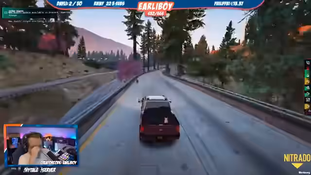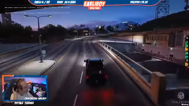 02:12:15Der Streamer beschreibt eine hitzige Verfolgungsjagd, bei der er einen Motorradfahrer über die Grenze verfolgt. Kurz nach dem Grenzüberquerer halten zwei große, schwarze Fahrzeuge, die Grenze blockieren, wodurch die Verfolgung unterbrochen wird. Die Insassen dieser Fahrzeuge steigen aus und eröffnen das Feuer auf die Verfolger, was zu einer Schießerei führt. Die Lage eskaliert, da mehrere Personen bewaffnet und maskiert am Grenzgebiet unterwegs sind und versuchen zu fliehen.