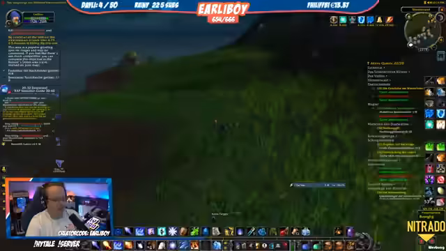 03:47:54Nach einem unruhigen Start ins Stream beginnt der Streamer seine Abenteuer in WoW Classic. Nach dem Ende einer gestrigen Gruppensession sucht er nun nach neuen Zielen für die aktuelle Gruppe. Nach einem gescheiterten Portversuch per Teleportation erkundet er das Ödland und den Dämmerwald, wo er Schwierigkeiten hat,合适的 Gegner oder Gruppenmitglieder zum Leveln zu finden. Der Fokus liegt darauf, effizient Quests zu erledigen und neue Gruppen für Dungeons zu finden, was aufgrund der Unübersichtlichkeit der Gebiete und der Verfügbarkeit von Mitspielern eine Herausforderung darstellt.