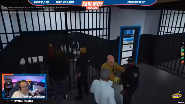 02:57:44Ein in Gewahrsam befindlicher Insasse nutzt eine Ablenkung, um aus der Zelle zu fliehen. Der Streamer, der die Szene beobachtet, beschreibt die Flucht, bei der der Gefangene aggressiv wird und sich wehrt. Trotz der Bemühungen der Beamten gelingt es dem Gefangenen, sich zu befreien und mit einem Fahrzeug zu entkommen, was zu einer weiteren Verfolgungsjagd durch den Streamer führt, der versucht, den Flüchtigen wieder einzufangen.