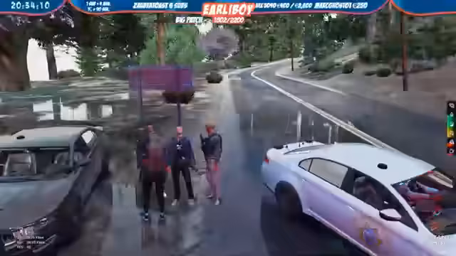 08:11:34Es findet ein Polizeieinsatz statt, bei dem ein Fahrzeug kontrolliert wird. Der Fahrer wird aufgefordert, auszusteigen und die Hände hinter den Kopf zu legen. Der Streamer gibt präzise Anweisungen zur Durchführung der Kontrolle, einschließlich der Fahrzeugpositionierung und der Behandlung der Insassen. Es kommt zu Spannungen bei der Durchführung.