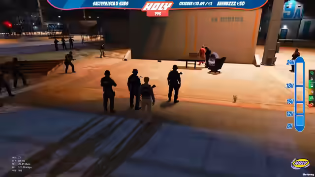 01:16:42Der Streamer wird von einem Spieler getötet, woraufhin er seine Waffen verliert. Er wird von einem Kollegen gerettet und zum RPD gebracht. Es wird überlegt, ob ein Panzer im Spiel fehlt. Der Streamer fragt sich, woher der Begriff "The Hair" für den Notruf kommt. Ein Notruf wegen Belästigung geht ein, aber der Anrufer ist nicht mehr vor Ort. Es stellt sich heraus, dass der Anrufer selbst der Täter ist. Der Streamer nimmt den Anrufer fest, der sich als Justin herausstellt und einen Crash-Out fordert. Justin wird von einem Auto überfahren und stirbt. Seine Kollegen greifen den Streamer an, der ebenfalls stirbt. Der Streamer verliert seine Schuhe. Seine Kollegen nehmen die Angreifer fest. Der Streamer versucht, seine Arbeitsuniform anzuziehen, um wieder fahren zu können. Die Angreifer sind jedoch bereits geflohen. Der Streamer findet seine Schuhe wieder.