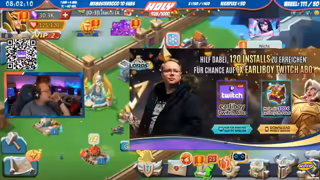 08:58:51Der Streamer stellt eine Partnerschaft mit Lords Mobile vor, mit einer Kampagne, die 80 Anmeldungen über seinen Link erfordert, um ein Paket im Wert von 300 Euro und 20 verlost Subs freizuschalten. Top-Spieler gewinnen Preise wie 100-Dollar-Pakete und Edelsteine. Er betont, dass Anmeldungen über mobile Geräte erfolgen sollten und nicht über den PC, um Probleme zu vermeiden. Die Aktion läuft neun Tage und fünf Stunden, und die Zuschauer werden aufgefordert, seiner Gilde 'Die Unfähigen' beizutreten. QR-Codes und Links werden im Chat bereitgestellt.
