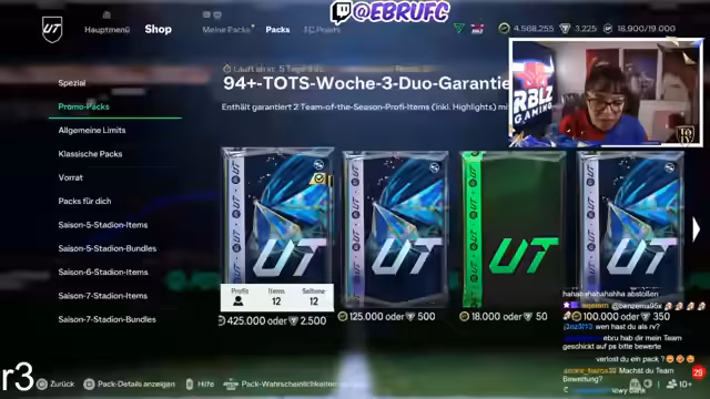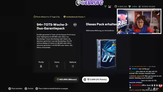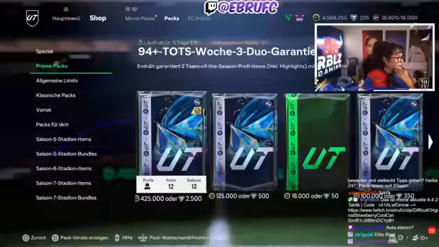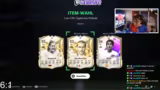 01:21:33Der Stream beginnt mit der Ankündigung und dem Öffnen der ersten 94+-TOTSPacks. Zunächst werden drei TOTS-Spieler gezogen: Özet, Gürassi und Zentner, jedoch wird die Qualität der Karten als sehr schlecht empfunden. Im Anschluss wird auf den ARD-Stream des Vortages Bezug genommen, bei dem Musialer gezogen wurde, und es wird die Meinung geäußert, dass man in diesem Jahr bei EA schlechter bedient wird als sonst.