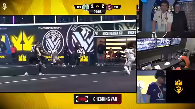 00:53:45Es gibt einen Penalty für ERA Colonia, der aber vergeben wird. Die Interimsteammanager sind zuversichtlich, dass ihr Team den nächsten Penalty verwandeln wird. Es gibt Diskussionen über einen möglichen Elfmeter für Vice Versa, der nach VAR-Check gegeben wird. Der Elfmeter wird verwandelt und es steht 2:2. Die Interimsteammanager freuen sich über die Unterstützung des Publikums und betonen, dass sie ERA Colonia vom Platz jagen wollen. Sie loben das Tempo und die Spielweise ihres Teams. Es wird überlegt, ob jemand mal die Drohne treffen wird. Die Annahme und Behauptung des Balls wird gelobt. Es wird über mögliche Schwalben von Spielern von ERA Colonia spekuliert. Es gibt einen VAR-Check wegen eines möglichen Fouls. Ein guter Ballgewinn wird gelobt, aber es wird bemängelt, dass nicht genug Tempo aufgenommen werden konnte. Insgesamt wird das Spiel als hochklassig und taktisch anspruchsvoll beschrieben.