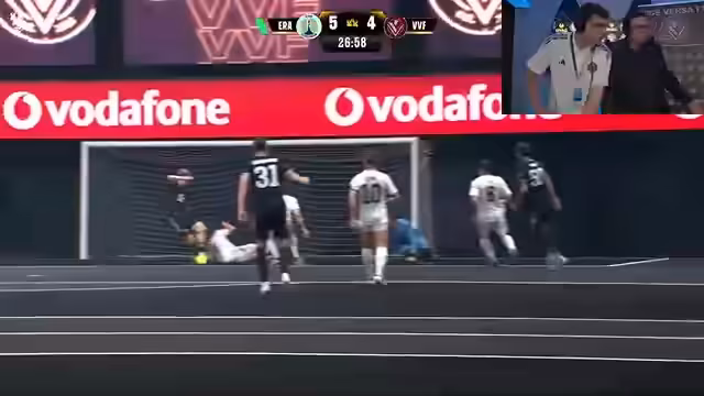 00:41:26Das Spiel zwischen Vice Versa und ERA Colonia beginnt. Die Interimsteammanager sind zuversichtlich und freuen sich auf das Match-Up. Es wird kurz in die Teamkreise der beiden Mannschaften reingehört. Der Ball wird eingeklemmt. Ebru wird begrüßt, die ebenfalls am Start ist. Es wird erwähnt, dass das Spiel immer mit einem 1 gegen 1 plus Torwart startet. Nach einer Minute kommen weitere Spieler hinzu. Es gibt einen guten Abschluss von Leitner, aber die 1 gegen 1 Situation wird nicht optimal genutzt. Die Defensive von Vice Versa wird als stark gelobt. Der Torwart hält stark und es gibt ein Tor für Vice Versa zum 1:1 Ausgleich. Die Interimsteammanager betonen, wie wichtig es ist, so schnell wieder auszugleichen. Die Defensive wird weiterhin gelobt und der Torwart pariert erneut stark. Ein Eckball wird angezeigt. Die Ballbehauptung wird gelobt und es wird erwähnt, dass ERA Colonia ordentlich Druck macht. Die Defensive funktioniert aber gut und es gelingt, sich zu befreien.