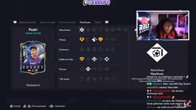 00:12:18Ein zentraler Punkt des Streams ist die Bewertung der Teams der Zuschauer, die dieser via PSN senden. Der Streamer möchte den Durchschnittszustand der Teams sehen und gibt detaillierte Tipps zur Verbesserung von Spielern und deren Playstyles. Besondere Aufmerksamkeit gilt dabei demAccount-Verbesserungs-Service, bei dem Zuschauer ihre Teams von ihm analysieren lassen können. Es werden auch fehlerhafte Playstyle-Zuweisungen von Zuschauern humoristisch kritisiert und korrigiert.