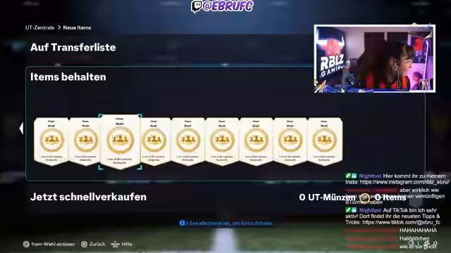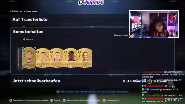 01:29:55Es findet eine Diskussion über das Trophy-Titan-Event statt, der Streamer bezeichnet es als langweilig und kritisiert, dass man meist schlechte Icons wie Birgit Prinz zieht. Er empfiehlt seinen Zuschauern, seiner anonymen WhatsApp-Gruppe beizutreten, um schnellste News, SBC-Hinweise und authentische Informationen zu erhalten. Es wird auch über die mäßige Pack-Rate und den mäßigen Inhalt von Road-to-the-Final-Packs gesprochen.