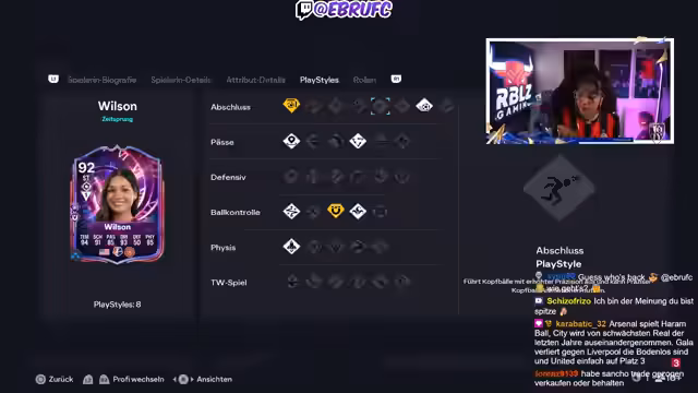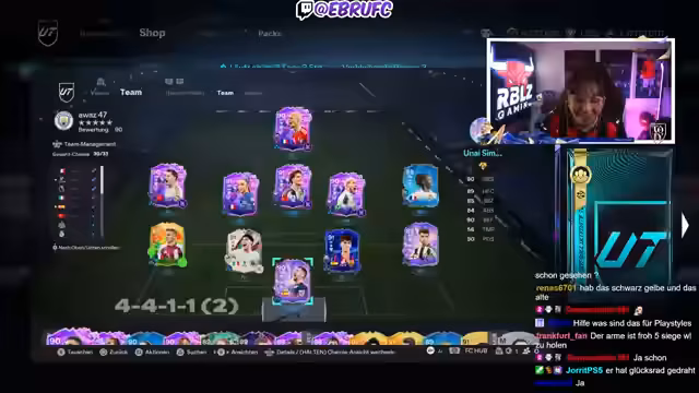 00:25:38Der Streamer öffnet verschiedene Packs aus dem Shop, darunter 90+-Picks und Road-to-the-Final-Garantie-Packs, und veranstaltet Wettspiele, bei denen die Zuschauer darauf tippen können, ob eine 92+-Karte gezogen wird. Nebenbei wird die aktuelle Meta im Spiel kritisiert, insbesondere die übermächtige Bedeutung von Playstyles wie Abfangen und Kanteln sowie die teuren Evolution-Karten, die den Spielstil stark beeinflussen. Einige Pack-Öffnungen verlaufen dabei enttäuschend.