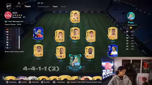 04:36:28Nach den erfolgreichen Pack-Ziehungen wird die Strategie angepasst, um die gesammelten Spieler optimal zu nutzen. Es wird entschieden, zunächst Squad Building Challenges (SBCs) wie die Wundertüte und die 85er-Upgrades zu absolvieren, da hierfür viele der gezogenen 83er-Spieler abgegeben werden können. Das Hauptziel ist es, genügend Futter für das Icon-Pack zu sammeln und den Torwart des Teams durch den starken Nick Pope zu ersetzen. Pope wird als eine Top-Wahl für das Tor angesehen, insbesondere aufgrund seiner Größe und Attribute. Während der SBCs werden weitere Packs geöffnet, die zwar keine weiteren Special-Karten liefern, aber wertvolles Futter für zukünftige Herausforderungen bereitstellen. Die Diskussion im Chat dreht sich auch um die Effizienz von Teamformationen in der aktuellen Meta, wobei 4-5-1 als bevorzugte Wahl für E-Sportler genannt wird.