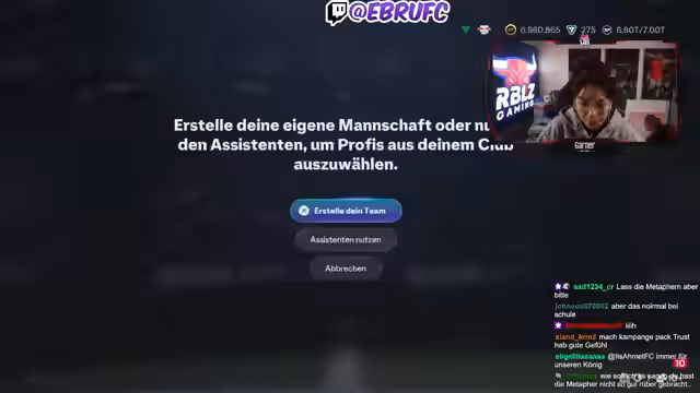 00:08:28Der Streamer kündigt an, heute höchstwahrscheinlich Zuschauer-Accounts zu bewerten und zu verbessern. Er erklärt, dass er dies normalerweise offstream macht, es aber onstream mit den Zuschauern teilen möchte. Die Zuschauer sollen ihre Teams über PSN schicken, wobei die einzigen Bedingungen sind, dass es sich um Playstation-Accounts handelt und die Teams nicht zu stark sind, da er 150 Euro aufladen und das Team verbessern möchte. Er betont, dass es keine Teambewertungen sind, sondern eine gezielte Verbesserung von Accounts, die ein Upgrade benötigen. Er sucht nach einem Account, in den er sich einloggen und das Team nach eigenem Ermessen verbessern kann, um daraus Videos zu erstellen. Er bittet darum, keine zu guten Teams zu schicken, da diese nicht viel Verbesserungspotenzial bieten.