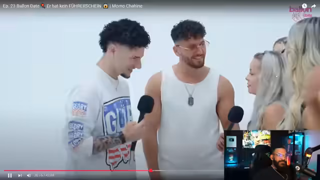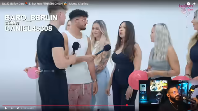 00:15:32Der Streamer erklärt kurz das Format von 'Ballon-Date' für diejenigen, die es nicht kennen: Frauen halten Ballons, und wenn ein Mann hereinkommt, lassen sie die Ballons platzen, wenn sie kein Interesse haben. Er kommentiert, dass eine Frau Mitleid erregen will, nachdem sie einen Ballon hat platzen lassen. Er kritisiert, dass ein Mann ohne Führerschein keine Chance bei diesen selbstständigen Frauen hat und fordert die Zuschauer auf, ihren Führerschein zu machen. Es werden einige Teilnehmerinnen vorgestellt, die ihre Namen, ihr Alter, ihre Herkunft und ihren Beruf nennen. Der Moderator des Videos, Momo, weist darauf hin, dass alles, was gesagt wird, nur zur Unterhaltung dient und nicht ernst genommen werden soll. Er macht Werbung für seine Musik auf Spotify und lädt Zuschauer ein, sich für die nächste Folge anzumelden.