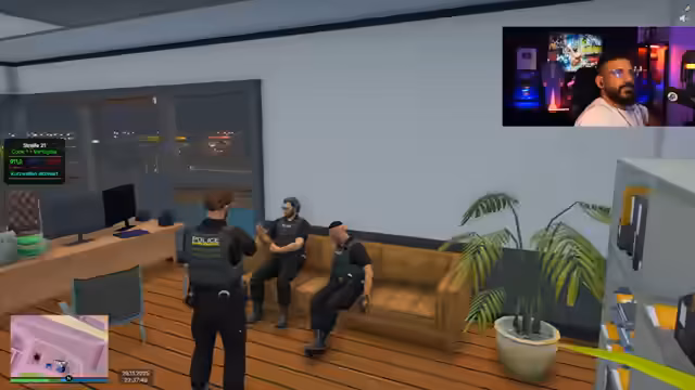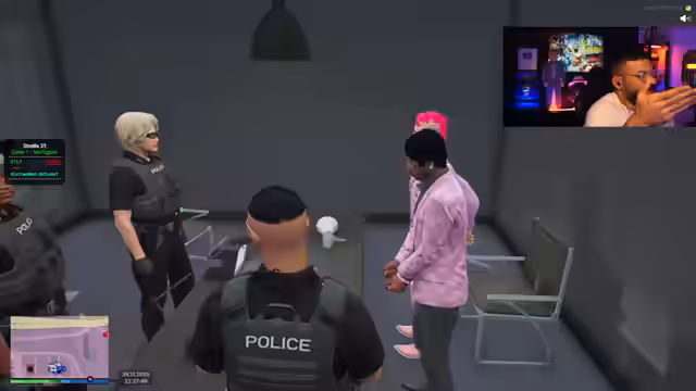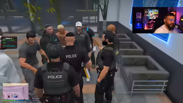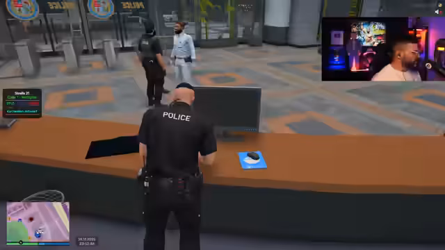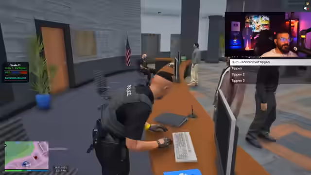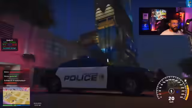 00:31:20Der Streamer und sein Cousin begeben sich auf Streife, wobei sie zunächst ein unverschlossenes Polizeifahrzeug nutzen, um zum Abschlepphof zu fahren und ihr eigenes Dienstfahrzeug abzuholen. Der Streamer äußert den Wunsch, seinen Cousin im Rang aufsteigen zu lassen und verspricht, alle positiven Ereignisse des Tages auf dessen Namen zu verbuchen. Während der Fahrt zum Abschlepphof kommt es zu einem kleinen Unfall, bei dem sie versehentlich ein anderes Polizeifahrzeug rammen. Im PD angekommen, herrscht Chaos: Es gibt eine Dienstbesprechung, und Abbas hat Probleme in der Lobby. Ein Dispatch meldet eine Bedrohung durch die La Casa Viera, eine Gruppe von 20 Personen, die Zivilisten bedrohen. Der Streamer und sein Cousin werden zu einem Einsatz gerufen, bei dem es zu Schüssen kommt. Die Situation eskaliert schnell, und der Streamer stellt fest, dass heute im PD die Hölle los ist, entgegen seinem Wunsch nach einem entspannten Rollenspiel-Abend.