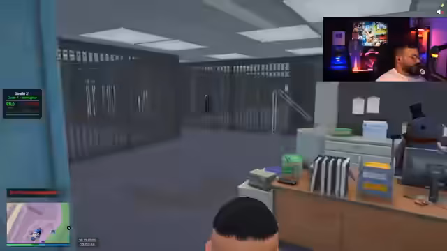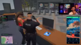 00:13:54Der Streamer wechselt nun zum eigentlichen Rollenspiel im 'PD'. Nach anfänglichen technischen Problemen mit der Tastatur und dem Stream Deck taucht er in die Rolle des 'Senior Officer Farood Ben' ein. Es finden diverse Interaktionen mit anderen Charakteren statt, was die Einarbeitung in die fiktive Polizeiwelt darstellt.