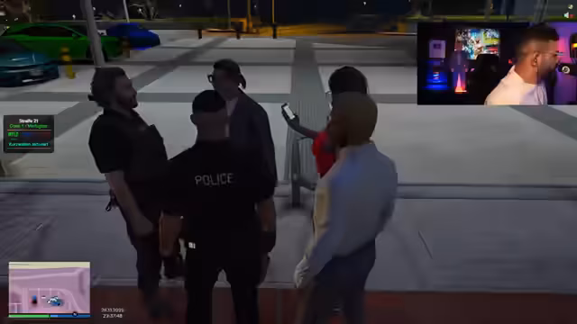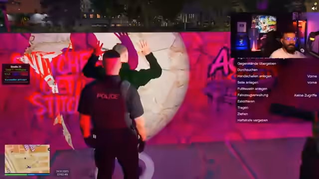 01:02:52Der Stream zeigt eine scheinbar normale Verkehrskontrolle, die jedoch plötzlich eskaliert. Nachdem der Beamte den Führerschein des Fahrers überprüft und zwei gefährliche Einträge feststellt, wird die Situation unruhig. Im weiteren Verlauf kommt es zu einem Vorfall im Fahrzeug, der zu einer Festnahme und Durchsuchung des Fahrers führt. Parallel dazu taucht ein Hubschrauber auf, der für Verwirrung sorgt, und es werden Andeutungen über ein mögliches illegales Straßenrennen gemacht, was die Lage weiter kompliziert.