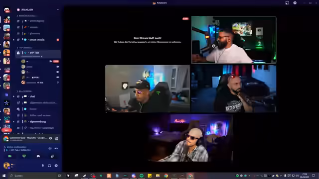 01:34:40Es wird darüber gesprochen, dass man sich nicht nur ablenken, sondern wirklich etwas lernen möchte. Auch außerhalb des Streams möchte man sich mit diesen Themen auseinandersetzen. Die Idee, gemeinsam mit anderen im Stream zu diskutieren, wird aufgegriffen, wobei auf die Rückkehr von Roat gewartet wird. Es wird der Wunsch geäußert, dass Teilnehmer Geschichten wie die des ersten Mannes oder ähnliche Dorfgeschichten erzählen. Ein Diss-Track von mir und Youssef wird erwähnt, und die Frage aufgeworfen, ob Kianusch einen Freestyle gegen beide machen könnte. Es wird über Props in einem Diss und das Anhören von Songs im Stream gesprochen, inklusive der Meinung dazu. Die Möglichkeit, selbst Musik zu machen, wird diskutiert, und es wird festgestellt, dass man oft schon an der Attitude und Wortwahl einer Person erkennt, ob sie musikalisch ist. Es wird auf Reptile verwiesen, einen deutschen Rapper, der international erfolgreich war. Queenie wird begrüßt und es wird überlegt, ob die anderen Discord-Teilnehmer ihre Kameras anmachen sollen, um die Atmosphäre persönlicher zu gestalten. Türkische Musik wird erwähnt, und es wird das Simulationsthema angesprochen, wobei betont wird, dass Gefühle in der Simulation echt sind, ähnlich wie in Träumen.
