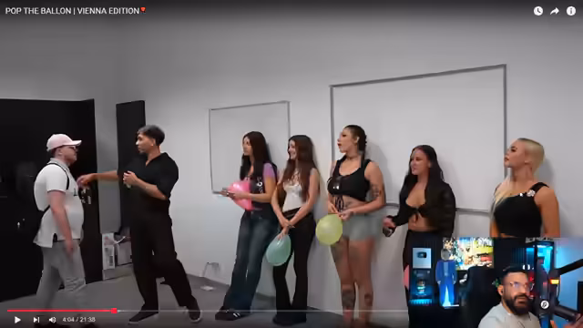 00:24:09Nach der Abstimmung im Chat startete der Streamer mit der Reaktion auf das Video '20 vs. Bachelor Lobby'. Er zeigte sich angesichts des Cringe-Contents skeptisch und verwies auf sein werbefreundliches Image. Während des Videos kommentierte er die Bewerber und deren Vorstellungen oft sarkastisch. Ein Kandidat namens Kaiser, der sich als Krypto-Investor und Rapper ausgab, wurde von den Frauen im Video scharf kritisiert, was den Streamer zu moralischen Reflexionen über Vorbilder und Erziehung veranlasste.