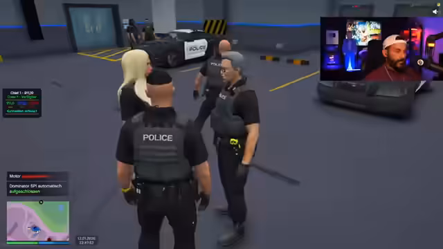 03:06:50Die Verfolgung von Vanilla Klein dominiert den Stream, inklusive Vorwürfen des Cheatings und Bug-Abuses. Der Streamer beschuldigt Klein, sich absichtlich im Wasser ertränkt zu haben, um einer Strafe zu entgehen. Es folgt eine Verhaftung, bei der über neue life-Regeln und Discord-Regeln diskutiert wird. Die Szene wechselt zu einer Geiselentführung mit Danilo, die in einer Verfolgung und weiteren Verhaftungen (Elias Klein, Danilo) gipfelt. Der Streamer dokumentiert Verbrechen und fordert harte Strafen. Eine lange Konfrontation mit einem Verdächtigen namens Herrn Dorn führt zu einer Verhaftung mit Drohungen und Granaten. Der Stream endet mit administrativen Diskussionen über falsche Dispatches und Strafverfahren gegen Vanilla Klein.