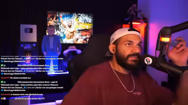 04:45:54In dieser Phase des Streams diskutieren die Teilnehmer über Rap-Künste und persönliche Fähigkeiten. Ein Teilnehmer namens Ravo wird aufgefordert, etwas aus seinem Studio vorzuführen, was er live macht. Die Konversation dreht sich um die Leistungen von Nobby und Farood Ben, wobei die Qualität von Rappern und deren Erfahrung thematisiert wird. Es wird über frühere Karrieren gesprochen und wie diese sich entwickelt haben, mit humorvollen und vergleichenden Bemerkungen zu verschiedenen Künstlern.
