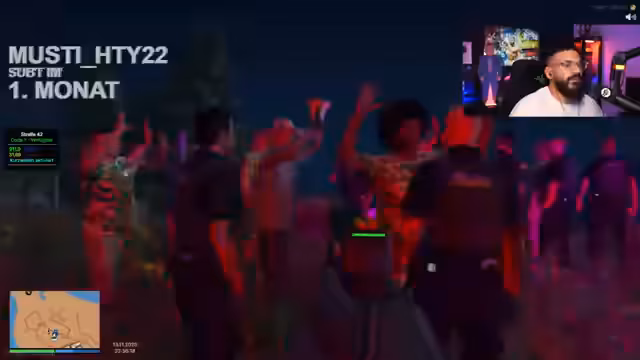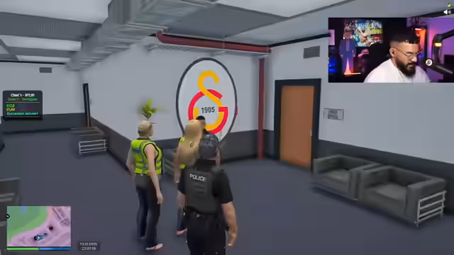01:34:49Ben und seine Kollegen erleben mehrere polizeiliche Einsätze. Es kommt zu Festnahmen,其中 eine Person wird aufgefordert, ein Logo zu küssen. Es gibt auch einen Vorfall mit einem Fenerbahce-Fan, der aggressiv reagiert und später in Gewahrsam genommen wird. Währenddessen gibt es auch technische Probleme mit dem Funkgerät und dem TeamSpeak-Server.